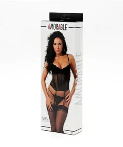 ¡Despierta la pasión con el Conjunto de Corsé, Tanga y Medias AMORABLE RIMBA!