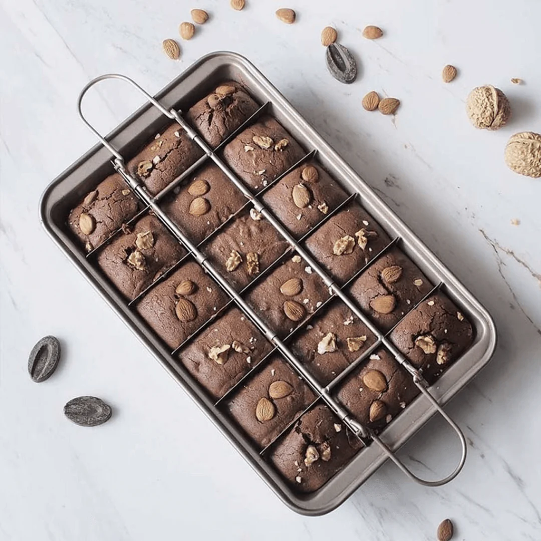 ¡Descubre el secreto para hacer brownies perfectos con el Molde para brownies Baker´s Secret! Este molde de acero carbono es la herramienta perfecta para cualquier amante de los brownies. Con su ingenioso divisor de metal, puedes cortar tus brownies mientras se hornean, sin necesidad de usar un cuchillo. El juego antiadherente hace que hornear sea rápido y fácil, con resultados perfectos en todo momento.