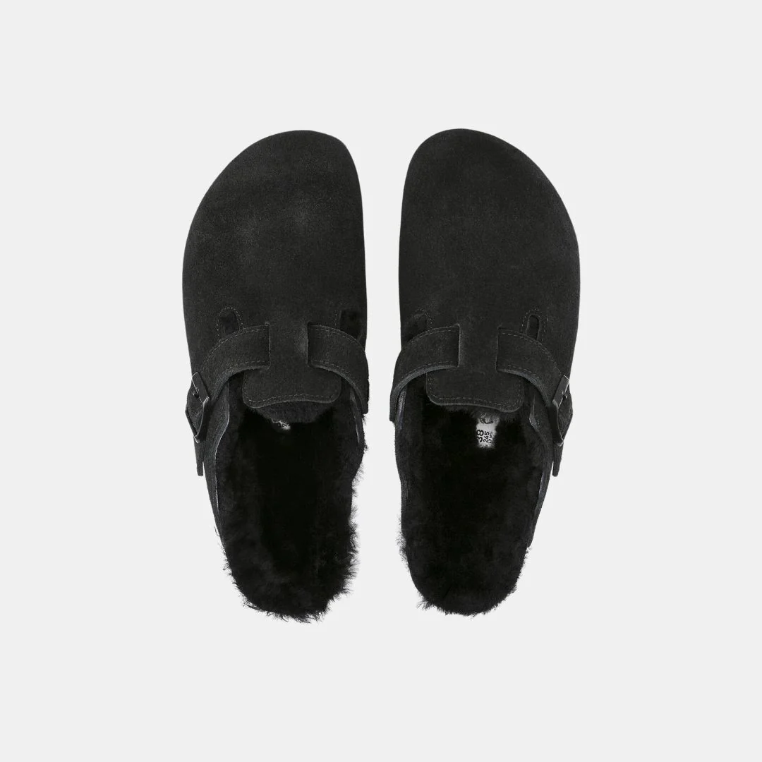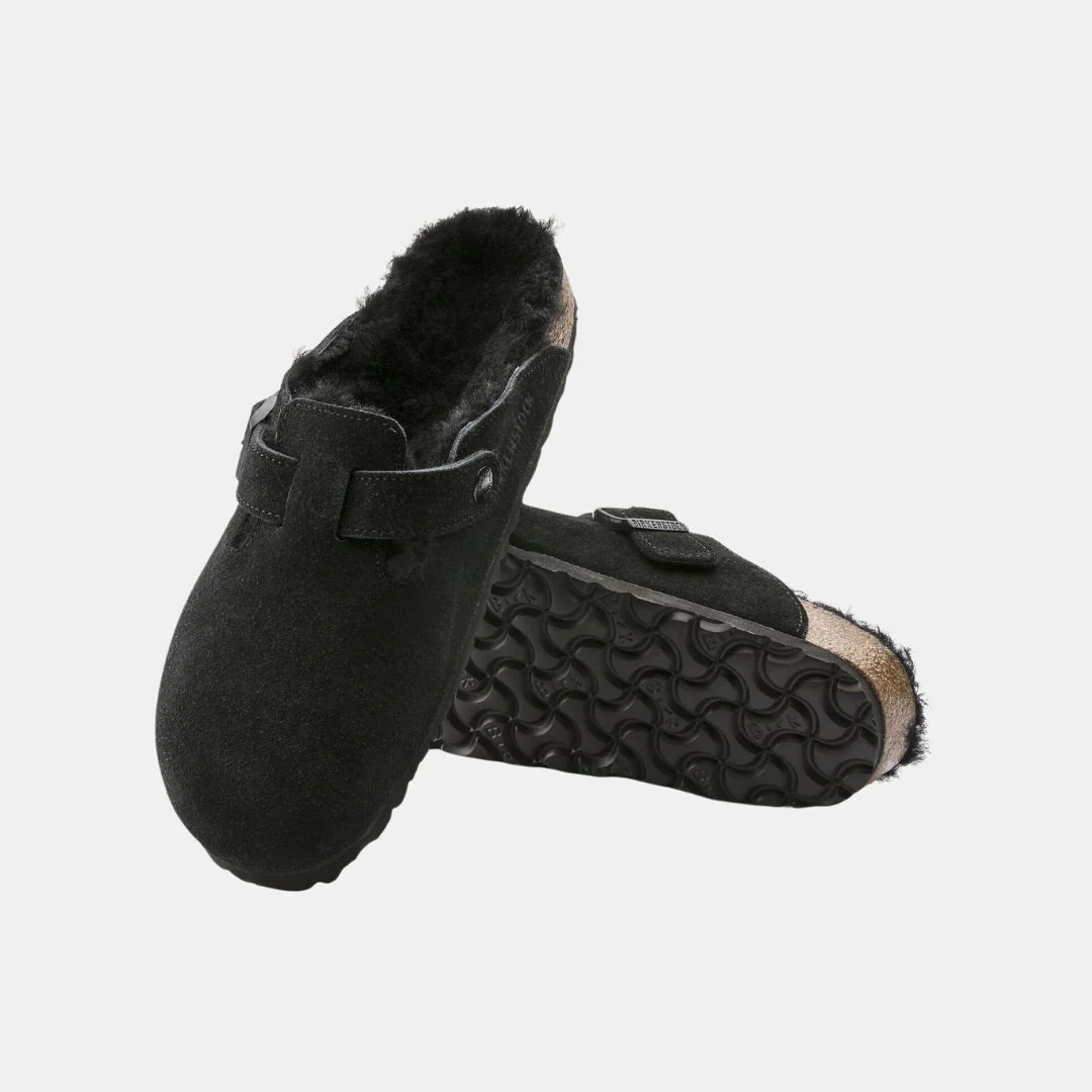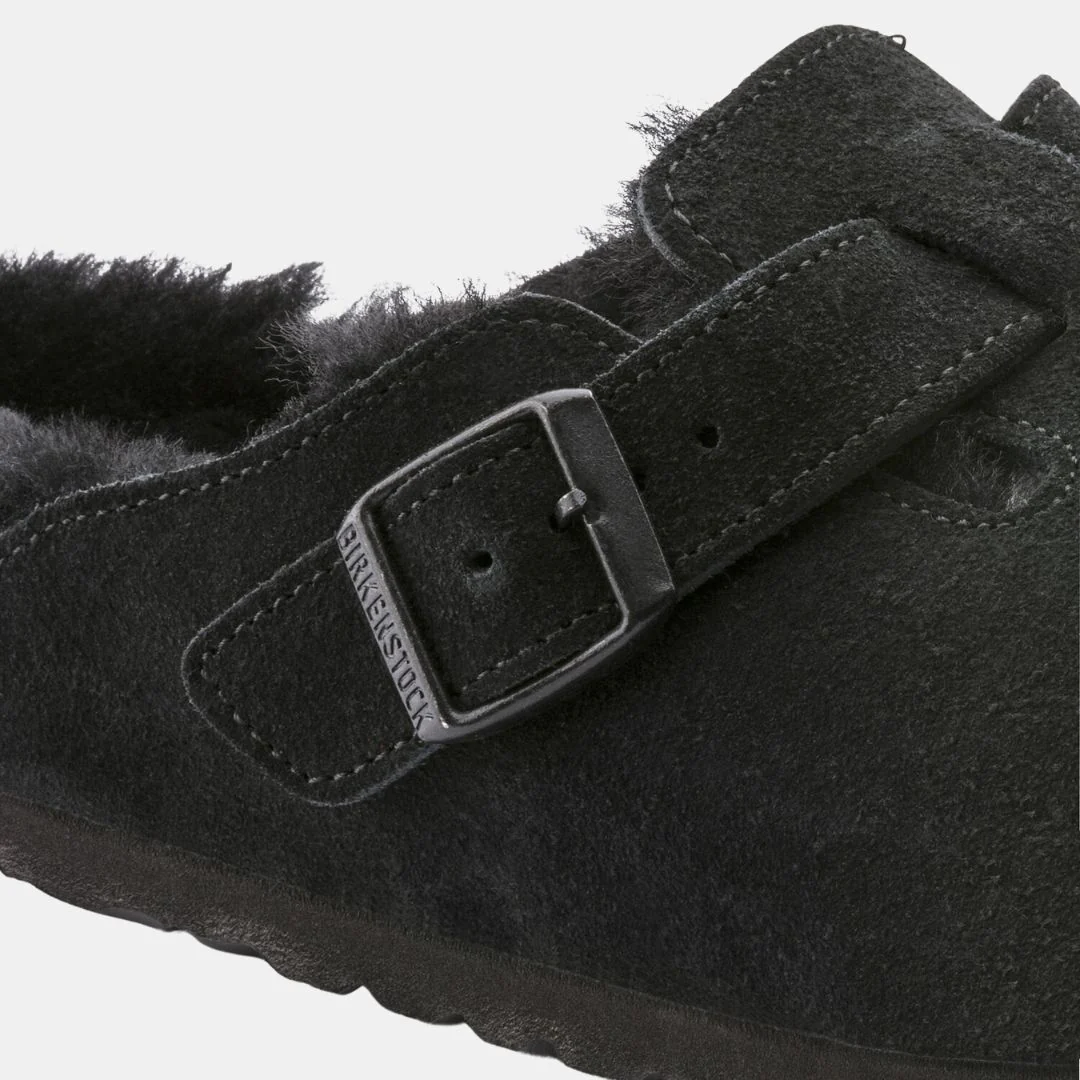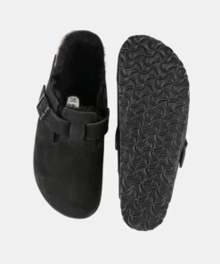 Birkenstock Boston VL Unisex Black Shearling Sandalias Sostenibles Para Todos Espectadores