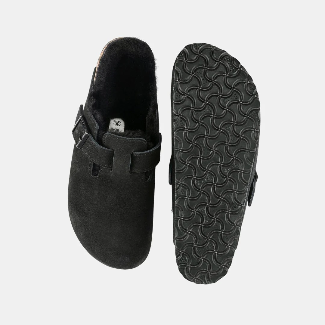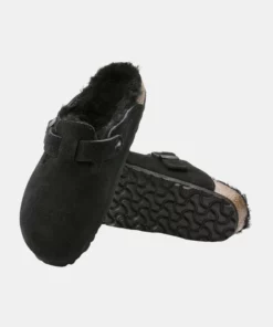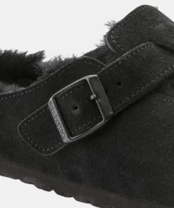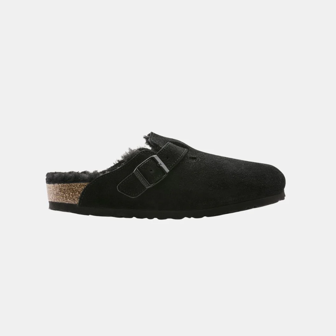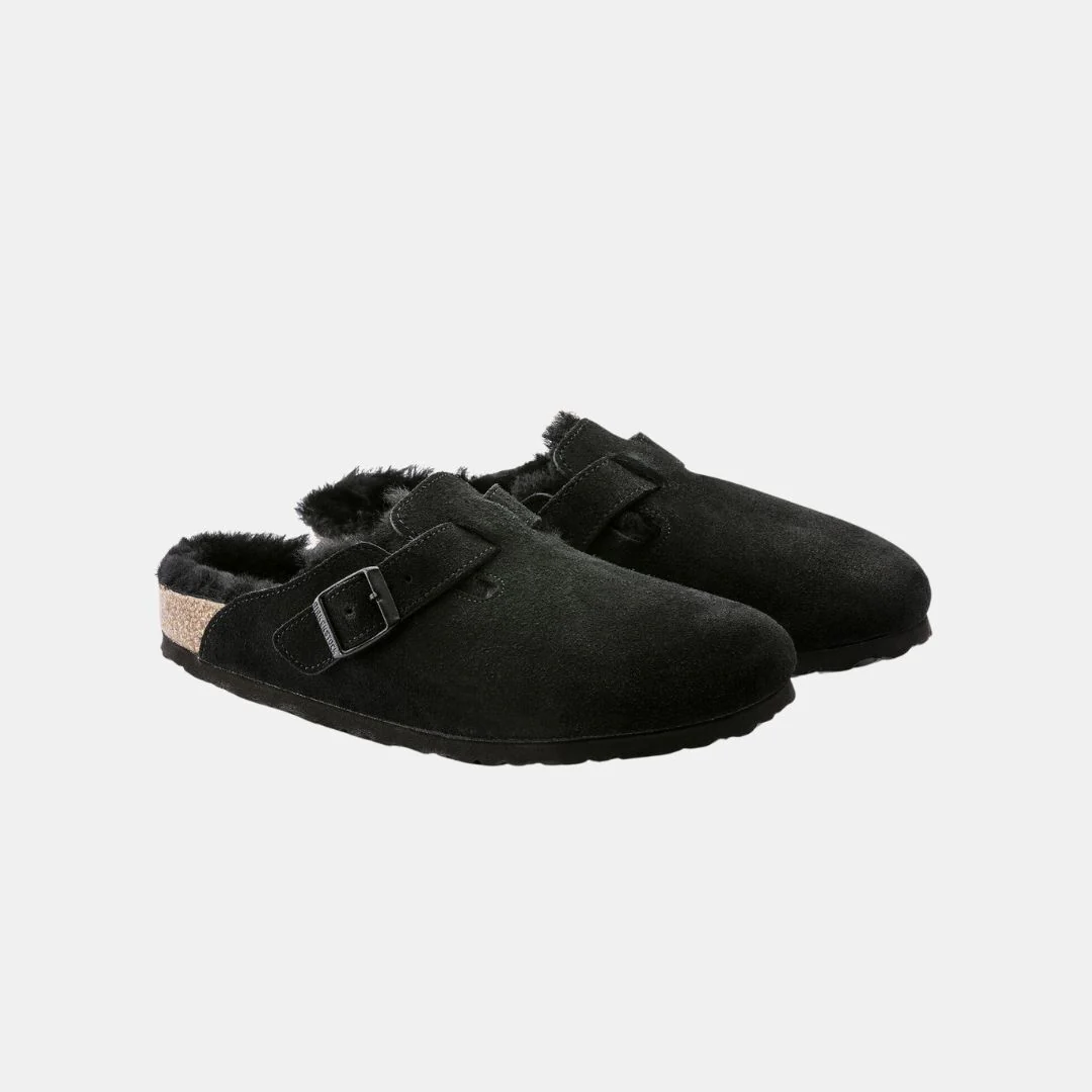 Birkenstock Boston VL Unisex Black Shearling Sandalias Sostenibles Para Todos Espectadores