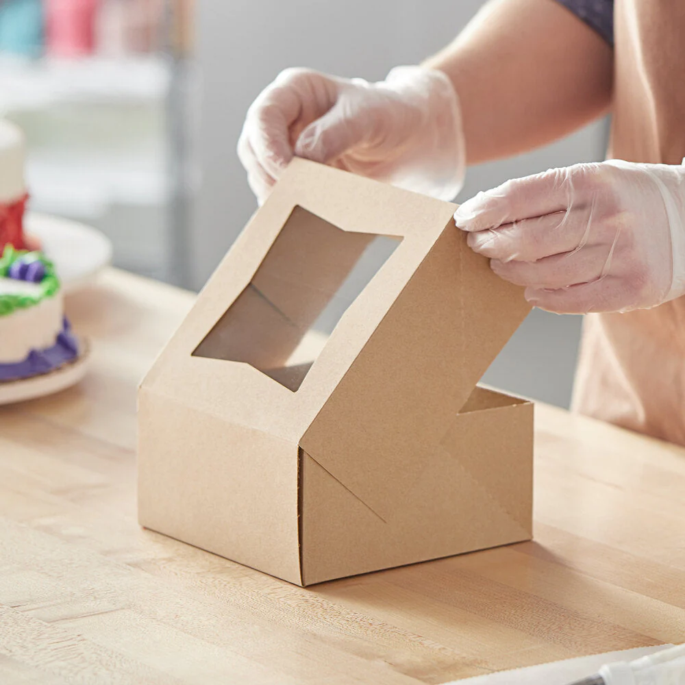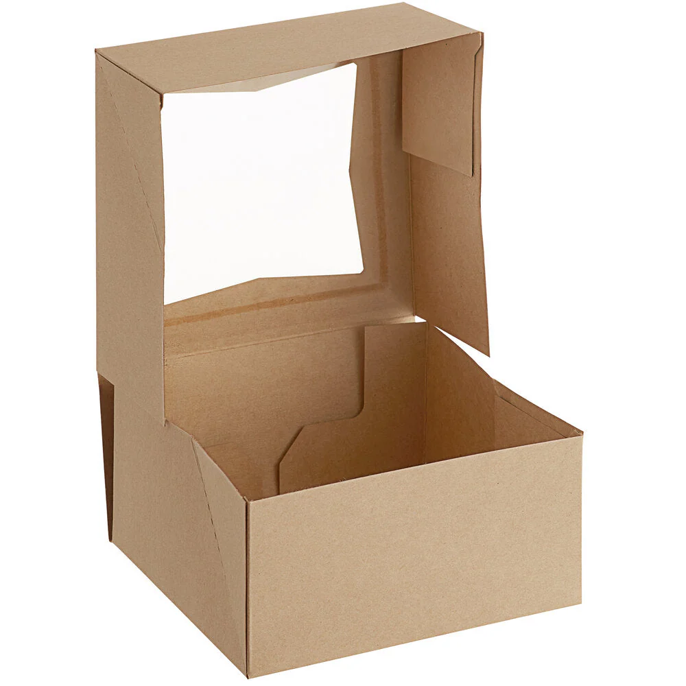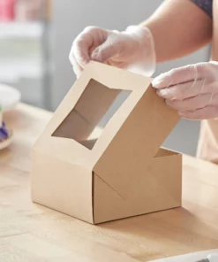 ¡Sorprende a tus clientes con la Caja kraft con ventana 6 x 6 x 3″! Esta caja, perfecta para tus deliciosos tartas, pasteles, donas y magdalenas, es la presentación ideal para llevar. Su diseño emergente automático no solo es un ahorro de tiempo, sino que también facilita un montaje rápido y eficiente, ¡ideal para el ritmo de tu panadería!