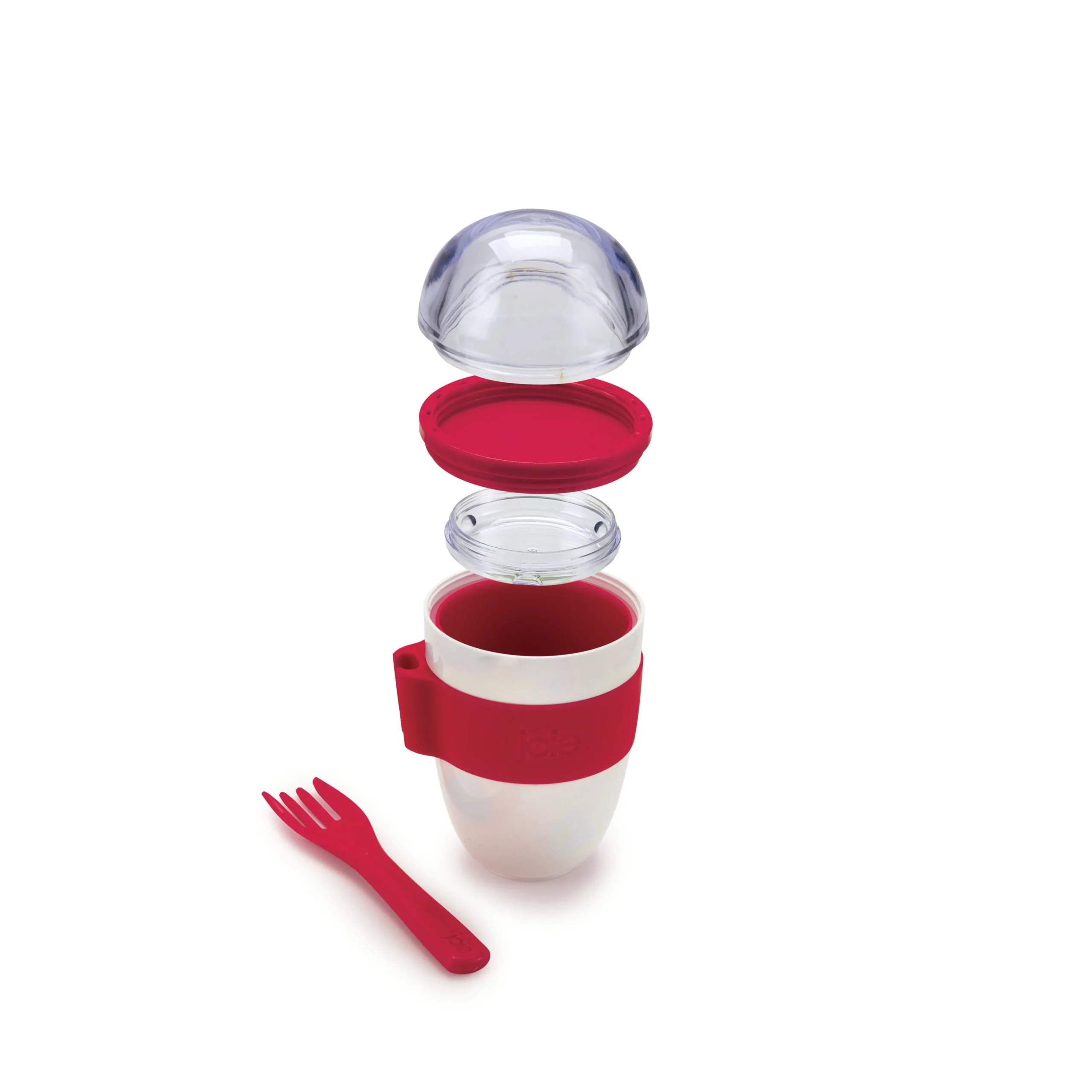 Nos preocupamos por el planeta y por tu salud. Por eso, el “Contenedor ensalada para llevar rojo” está fabricado con plástico y silicona sin BPA, completamente seguros para tus alimentos y reutilizable para reducir el uso de plástico desechable.