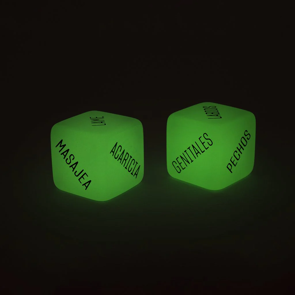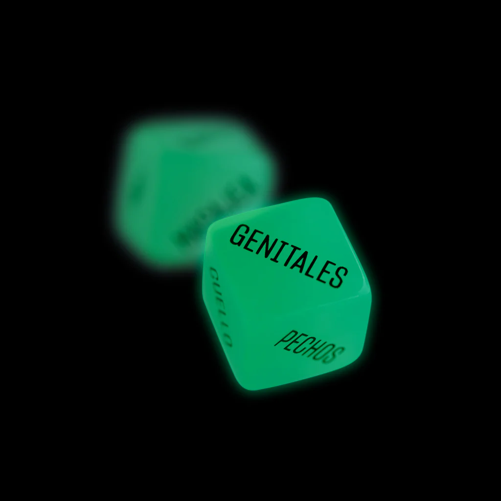 Imagina una noche de juegos con besos, caricias y mordiscos… ¡La chispa está asegurada! Un dado te indica la zona del cuerpo a estimular, y el otro, la acción. Combina, experimenta y descubre nuevas formas de conectar con tu pareja. Además, ¡brillan en la oscuridad para que la aventura continúe incluso con la luz apagada!