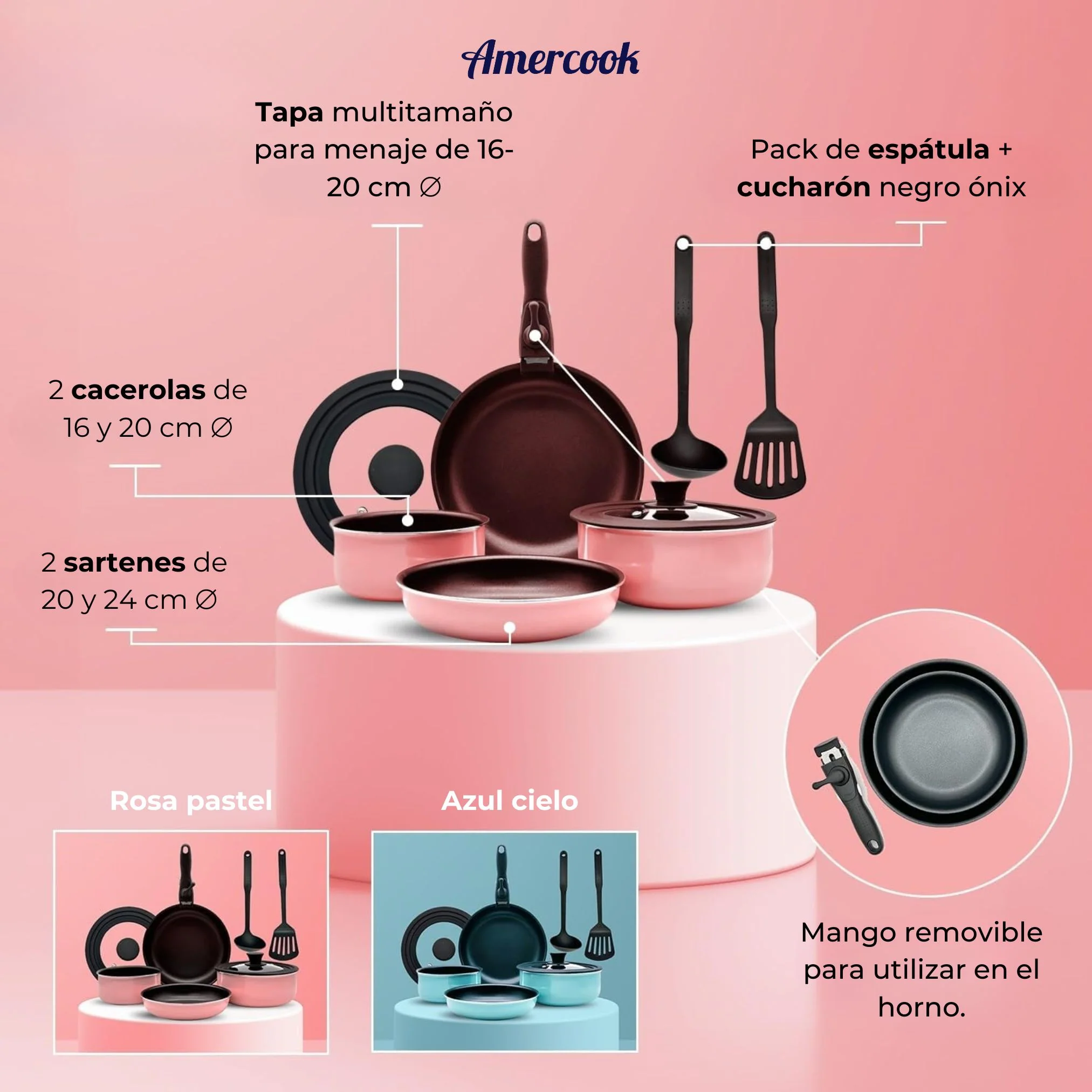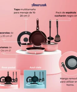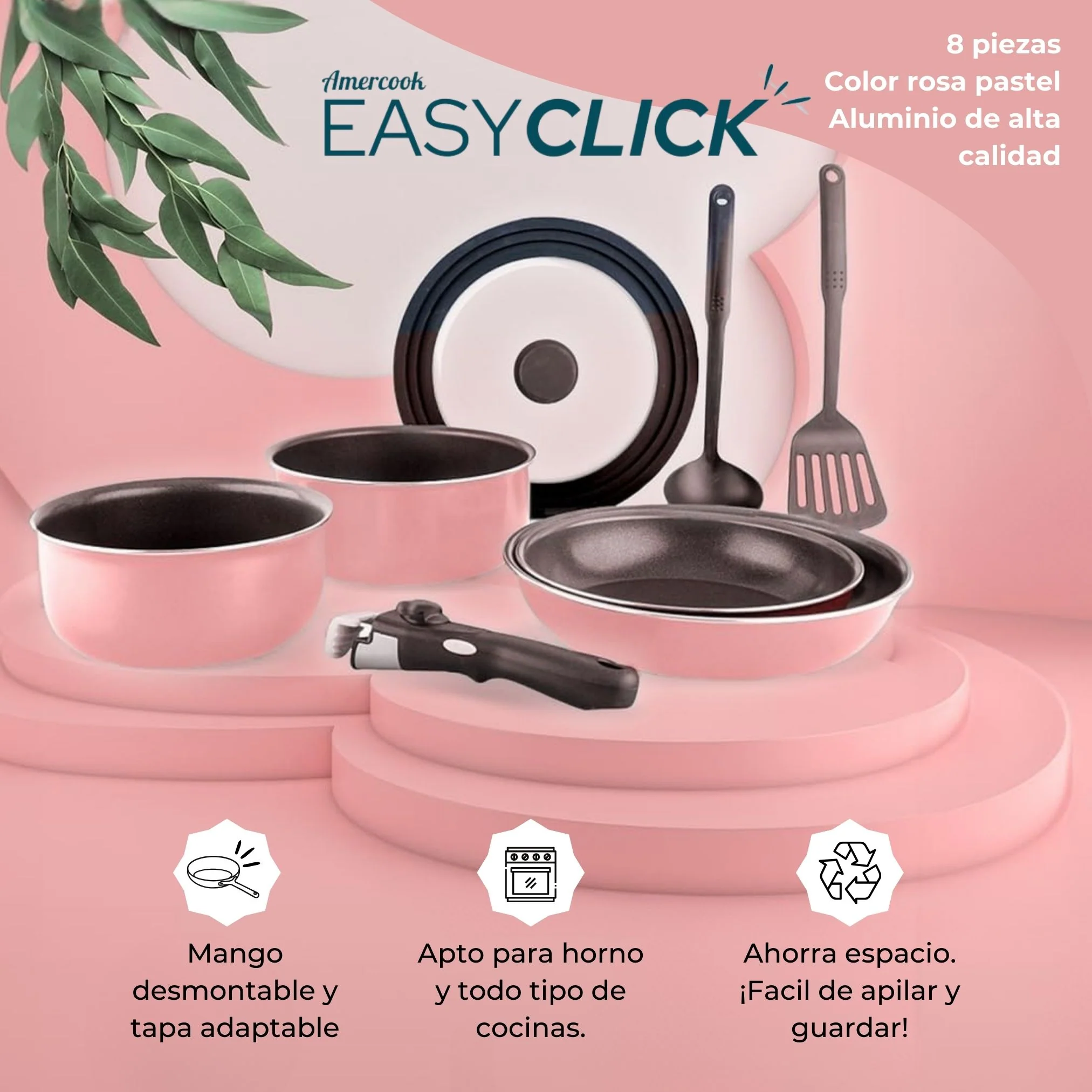 EasyClick Aluminio Rosa Pastel Cocina Segura y Ecológica 8 Piezas