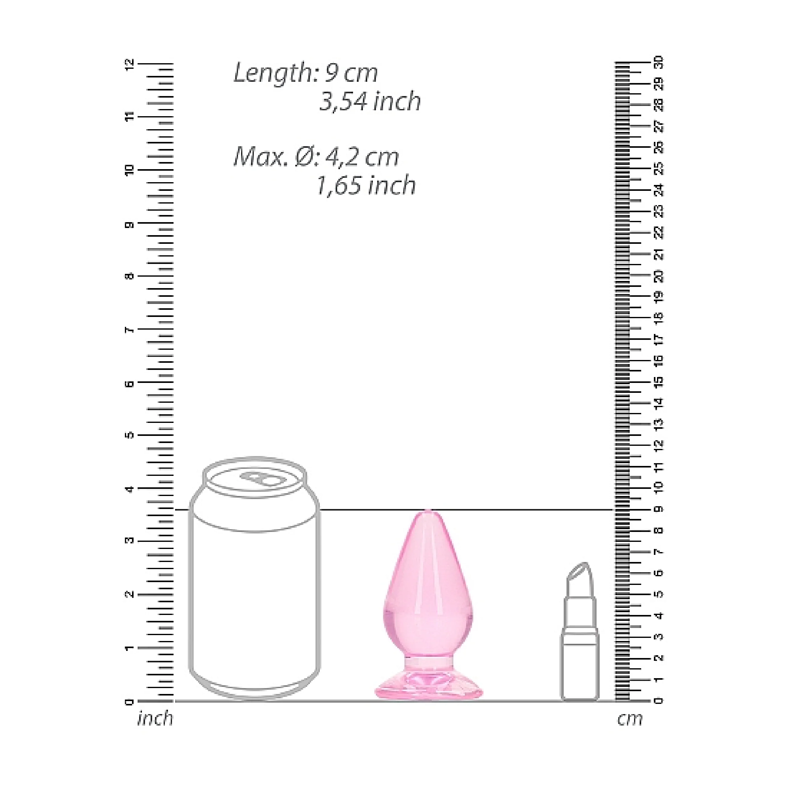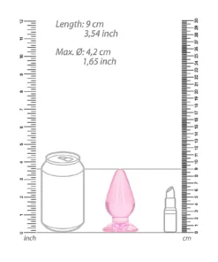 Con una altura total de 9 cm (incluyendo la base) y una longitud insertable de 8.5 cm, este enchufe es perfecto para principiantes y usuarios experimentados. Su circunferencia de 4.2 cm ofrece una estimulación placentera. La base funciona como ventosa para uso con manos libres.