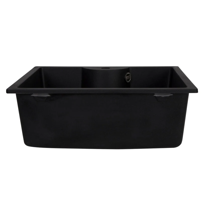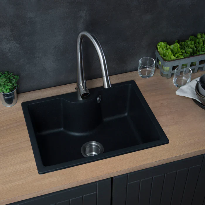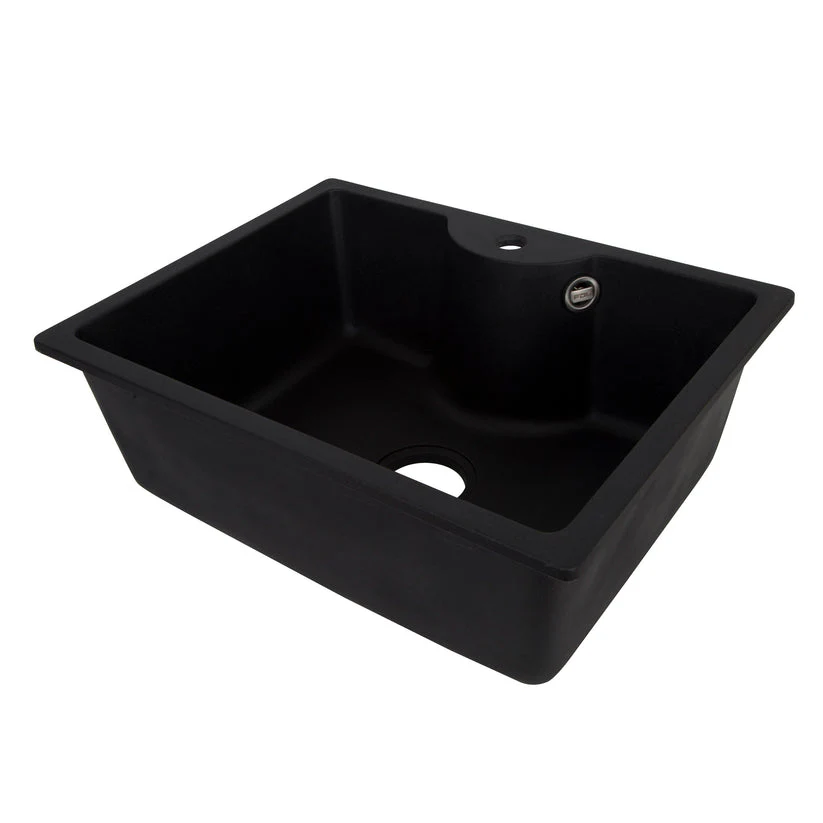 Este lavadero de granito negro no solo es de diseño elegante, sino que también cuenta con características innovadoras que lo convierten en una elección sostenible y segura: