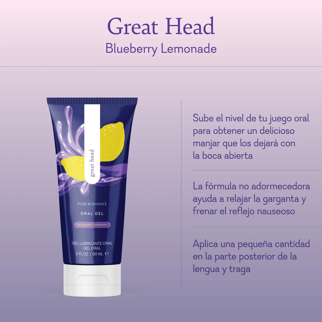 Nuestro producto es 100% biodegradable y sin químicos nocivos, lo que lo hace seguro para el medio ambiente y para tu piel. Los ingredientes naturales de Great Head – Blueberry Lemonade te permiten disfrutar de un momento íntimo sin preocuparte por el bienestar del planeta.