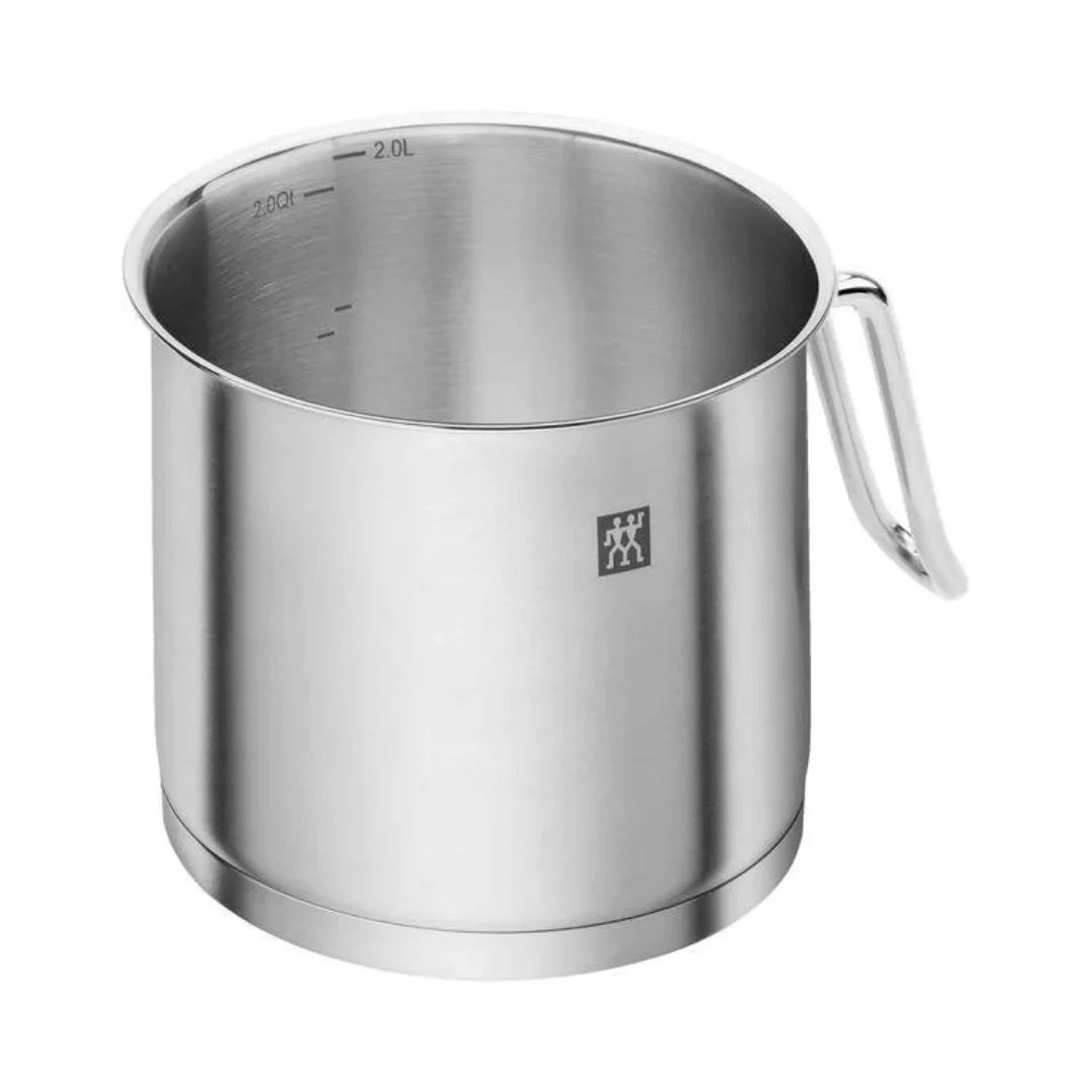 ¿Por qué elegir el Hervidor Zwiling? Porque está elaborado con acero inoxidable de alta calidad 18/10, lo que garantiza una cocina segura, libre de bacterias y fácilmente limpiable. Su diseño innovador, con una escala de llenado integrada y un borde de vertido ancho, te facilita la preparación y el manejo de tus recetas favoritas.