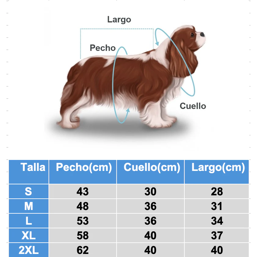 ¿Cómo elegir la talla ideal? ¡Es muy fácil! Mide a tu mascota y consulta nuestra práctica tabla de tallas. La circunferencia del pecho es la medida clave. Si tu perrito tiene mucho pelito, te recomendamos elegir una talla más grande para asegurar la máxima comodidad. Tu mascota lucirá increíble y estará protegida del frío con esta sudadera para mascotas, perfecta para perros de todas las razas.